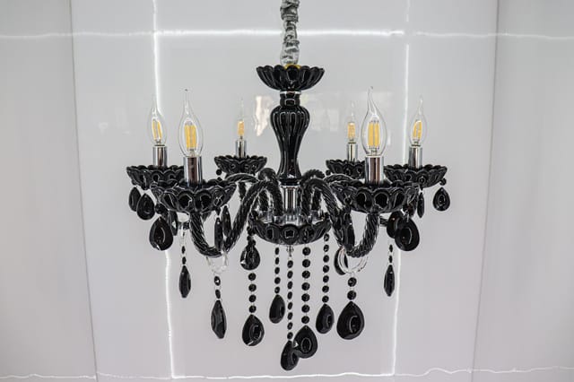 Introducing the Black Crystal Chandelier, a stunning piece that combines elegant design with a striking gothic aesthetic. This chandelier features intricately crafted black crystals and a polished black frame, creating a bold and sophisticated look. Perfect for dining rooms, living areas, or any space that needs a touch of dramatic elegance, this chandelier stands out as a statement piece in your home decor.